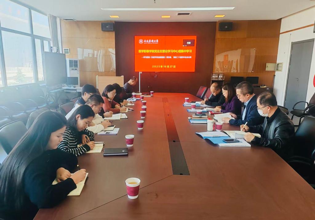 10月27日,医学影像学院党总支举行理论学习中心组(扩大)集中学习研讨。学院党总支书记罗莹主持学习,学院领导班子成员、各部门负责人、党支部书记、全体教师党员参加学习。
