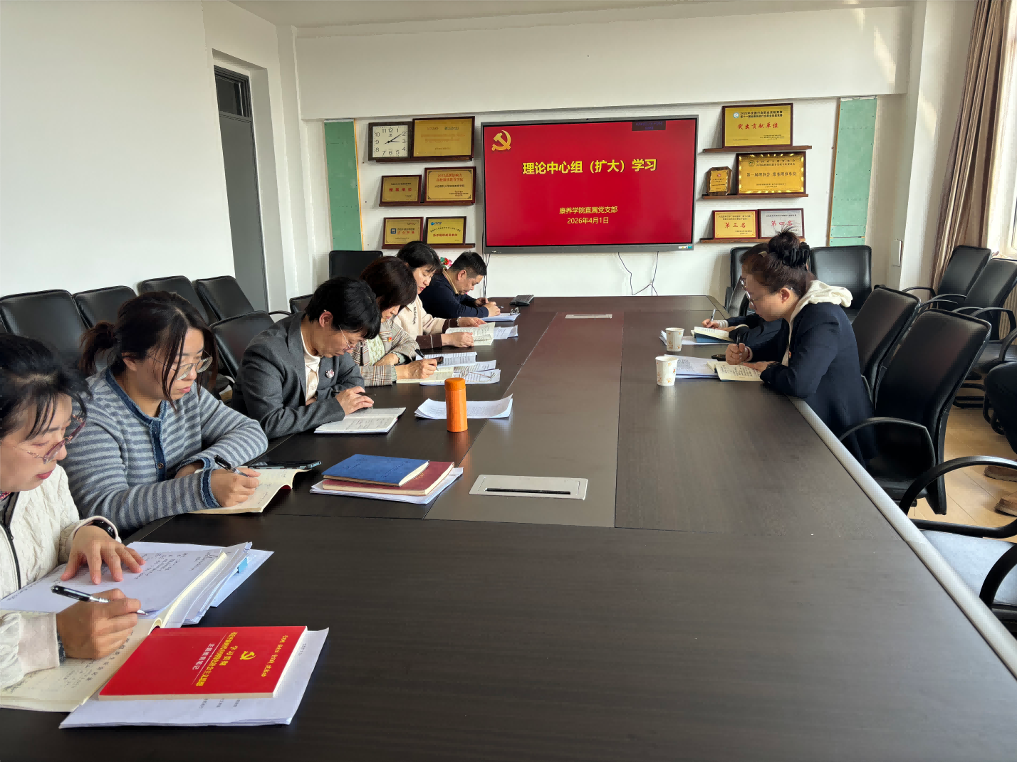 4月1日,康养学院直属党支部在401会议室开展树立和践行正确政绩观学习教育读书班暨理论学习中心组(扩大)学习。学院领导班子、支部委员、教工党员参加学习,学校党委第一巡察组成员列席会议。