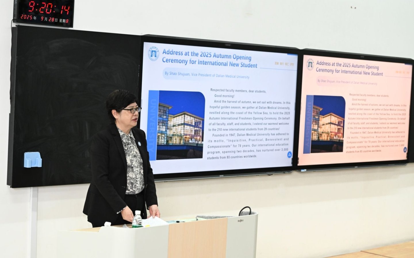 秋色宜人,杏林添新。9月28日,大连医科大学2025年秋季国际新生开学典礼在国际教育学院111教室举行。来自29个国家和地区的210名留学生新生齐聚一堂,共同开启在中国医学殿堂的求学之旅。副校长邵淑娟、国际教育学院负责同志及学院全体教职工出席。