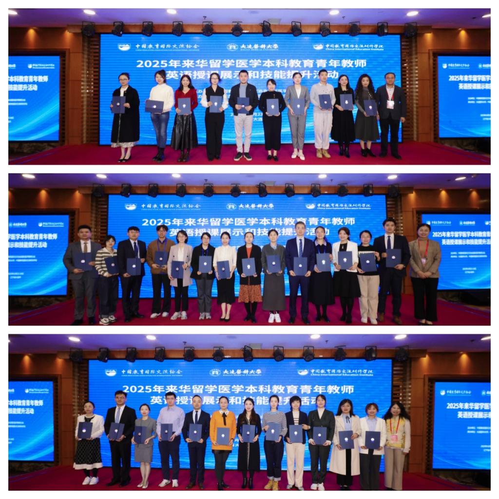 10月23日-26日,由中国教育国际交流协会国际医学教育分会主办,大连医科大学国际教育学院、中国教育国际交流研修学院共同承办的2025年来华留学医学本科教育青年教师英语授课展示和技能提升活动在大连星海假日酒店成功举办。本次活动旨在提升我国医学教育国际化水平,加强青年教师英语授课能力,促进各高校之间的教学交流与合作。共有来自47所兄弟院校的教师代表参与展示活动,200余名教师现场观摩学习。