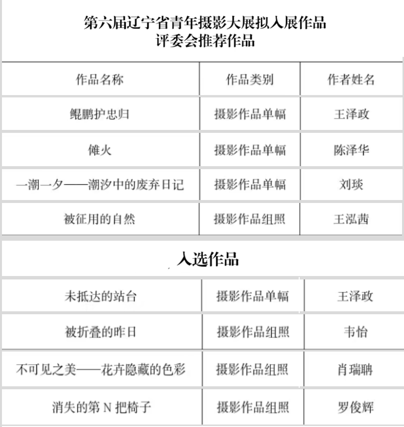 辽宁省青年摄影大展是辽宁省两年一度重要的青年摄影比赛,“辽宁省青年摄影十佳”是省内最具含金量的青年摄影师奖项。艺术学院师生在本次展览中取得的成绩,集中体现了摄影专业近年来的教学成效,也充分展示了师生们的专业水平。