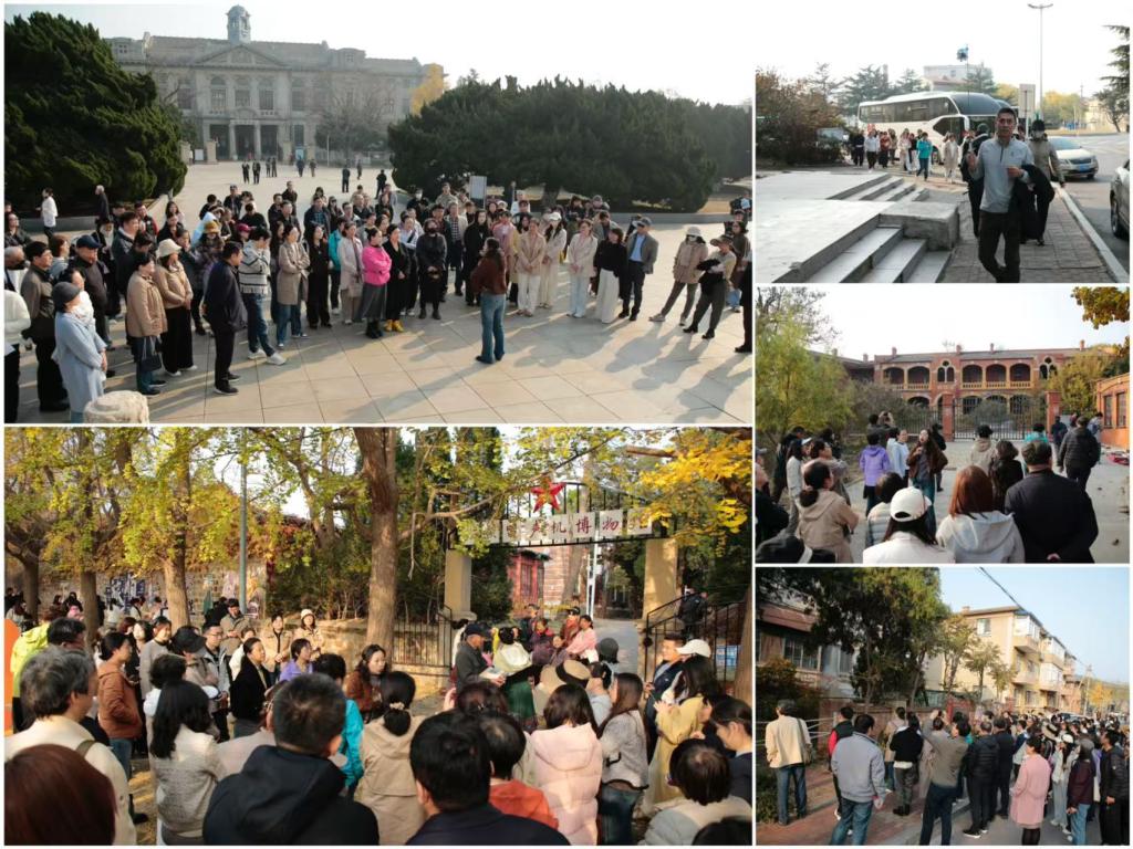 深秋的太阳沟,银杏鎏金,树影斑驳。活动伊始,两校统战成员在旅顺博物馆前集结,透过斑驳的建筑墙体重温近代中国曲折奋进的历史脉络。沿途,成员们走访多处历史遗迹,从殖民统治的警示印记到国际友谊的象征标志,每一处遗址都成为生动的爱国主义课堂。区委党校老师结合建筑细节与文物史料,生动剖析了旅顺口作为近代史重要见证地的特殊意义,让成员们通过砖瓦印记直观理解中华民族从屈辱到复兴的历程。