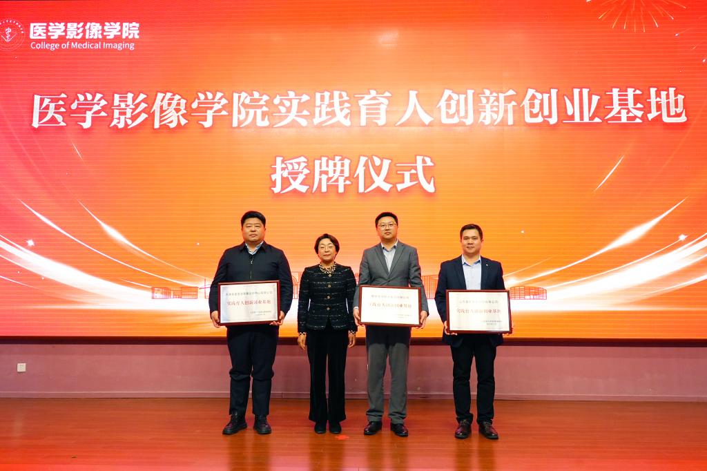 杨晓丽为联影集团等授“医学影像学院实践育人创新创业基地”牌匾。