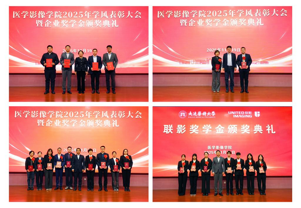 11月19日,医学影像学院2025年学风表彰大会暨企业奖学金颁奖典礼在图书馆学术报告厅召开。学校党委常委、副校长杨晓丽、刘志宇,联影集团战略发展中心总经理卢智博、大连极麦医学影像诊断中心有限公司CEO梁志军、山东医影智能科技有限公司总经理宋木松等嘉宾出席,学校相关职能部门领导,学院领导班子、教师代表及全体在校生共同参加。大会由学院党总支副书记岳耀主持。
