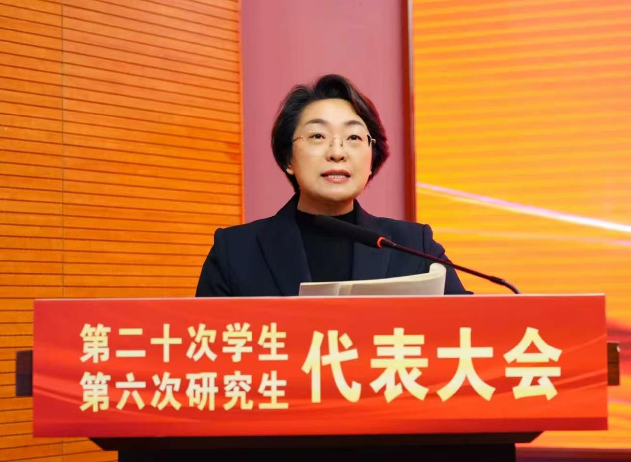 杨晓丽在开幕会上讲话。对学生会、研究生会过去一年的工作予以肯定,将学校一年来的发展变化向学生代表进行介绍。同时,对全校各级学生会、研究生会组织提出三点希望:一是坚定理想信念,做思想引领的“排头兵”。要把学习宣传贯彻党的二十届四中全会精神作为当前重大政治任务,在坚定信念中筑牢成长根基。二是坚守服务初心,做同学信赖的“贴心人”。要进一步深化改革创新,改进工作作风,让学生会、研究生会成为有温度、有担当的“学生之家”。三是坚持实干笃行,做校园建设的“实干家”。要架起桥梁,凝聚青年,做好纽带,以实际行动为学校高质量发展贡献青春力量!