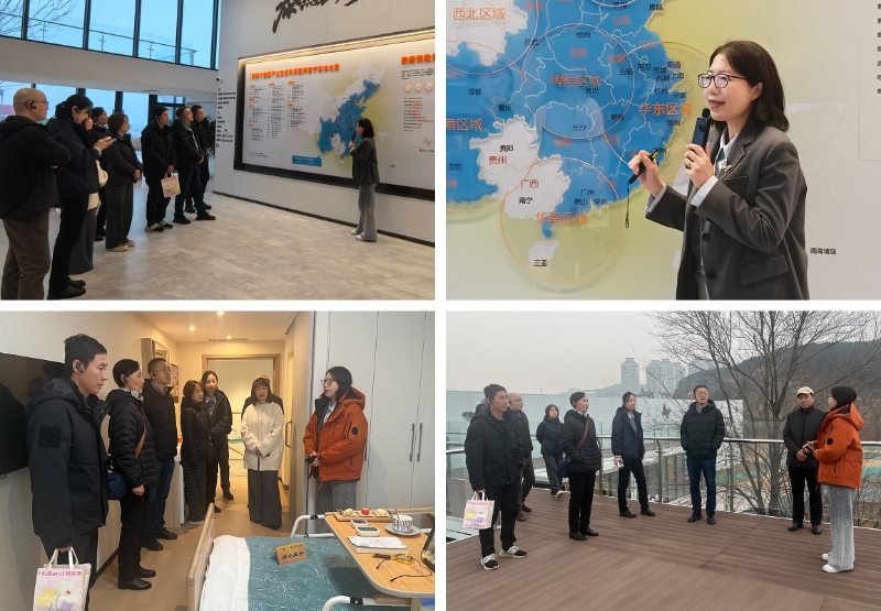 活动伊始,于鑫对民盟同仁表示欢迎,并在展厅系统介绍了泰康集团的发展历程、企业理念及大健康战略布局,重点针对泰康之家·虎滩湾项目进行解读,通过展示全国布局与运营成果,描绘了泰康规模化、标准化、品牌化的连锁康养服务体系。随后,一行深入社区参观适老化样板间,实地考察了无障碍通行、安全扶手、防滑地面、智能呼救系统、人性化家具布局及护理空间设计等细节,深入了解该项目在提升居住品质、重塑养老生活方式方面的前沿探索。