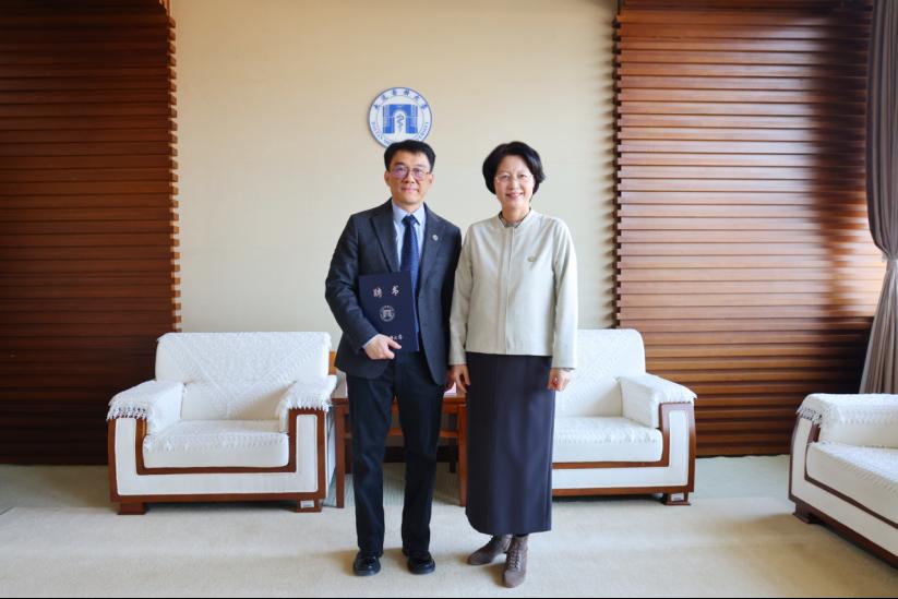 刘莹校长为张卫军教授颁发聘书
