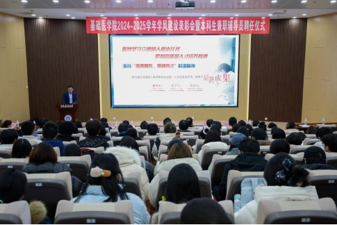 王运河发表讲话,对学院学风建设工作给予了充分肯定。结合学院发展定位、时代使命和党的二十届四中全会精神要求,提出要锚定“教学大院”定位,扛起学风建设“主力军”责任;要建强“育人队伍”根基,筑牢学风建设“主阵地”;要紧扣“国家战略”需求,打造多学科交叉“育人体系”;要深化“本研一体”推进,构建大学风“联动格局”。同时,寄语同学们践行“德智体美劳”全面发展要求,不负大学韶华,实现充实成长。学院要努力培养更多优秀医学人才,为学校高质量发展作出新的更大贡献。