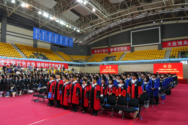 胸怀家国传承红色基因,矢志奋斗续写大医精诚。6月25日,附属第二医院2025届毕业典礼暨学位授予仪式在学校体育馆隆重举行。这是一场青春的加冕礼,也是一场梦想的启航仪式,象征着毕业生们学有所成,即将开启人生崭新的华章。医院党委书记任萍,大连医科大学副校长、医院党委副书记、院长刘志宇,医院党委副书记吕德胜、纪委书记勇前、副院长张桂信、副院长何盛为,学生工作部、教务部老师以及附属第二医院2025届近500名毕业生代表参加仪式。仪式由学生工作部主任苏勃主持。