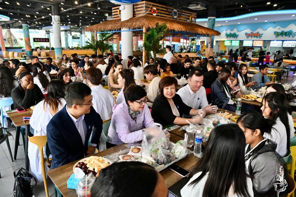 节目表演结束后,活动进入温馨的茶话会环节。现场摆放了各色月饼、新鲜水果等节令食品,师生围坐在一起,一边品尝美食,一边畅谈生活与学习中的趣事。大家用中文、英文以及各自的母语交流着对中秋的感受,分享着家乡的节日习俗,在轻松愉快的氛围中,进一步拉近了彼此的距离。活动最后,全体师生共同拍摄“中秋全家福”,镜头定格下一张张灿烂的笑脸,也记录下这场跨越国界的团圆时刻,为此次中秋活动留下了珍贵的回忆。