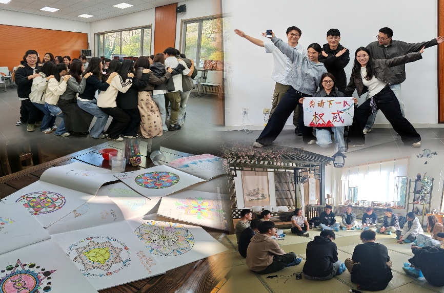 在曼陀罗绘画和手工潜能开发工作坊中,同学们在心流状态中体验曼陀罗绘画和半结构创意绘画,通过团体手工创意绘画作品的合作和展示,激发了创造力和乐观韧性的积极心理品质。