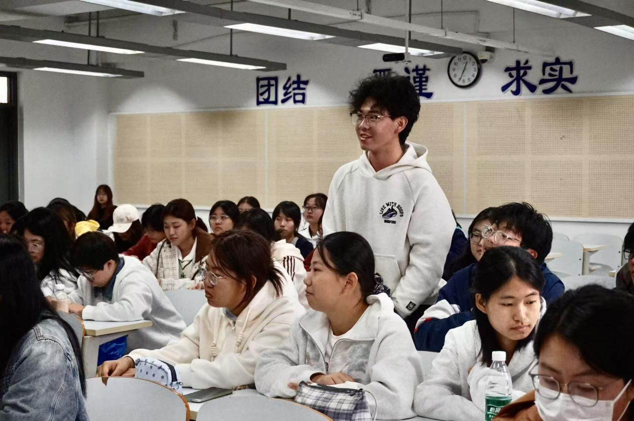 随后,许晓丽就“发展党员工作流程”作了系统讲解。她详细介绍了入党条件、发展程序与具体要求,完整梳理了从提交入党申请书、确定入党积极分子,到成为发展对象、接收为预备党员,直至预备党员转正的五个阶段,为同学们指明了清晰、规范的入党路径。不仅如此,她还对入党申请书和思想汇报的撰写进行了细致入微的规范指导,从格式要求到内容要点,确保每位同学都能掌握正确的书写方法。最后,她祝愿2025级新生在大学期间做好全面规划,努力在政治追求、专业学习与社会服务中走在前列,争取早日成为一名光荣的中共党员。