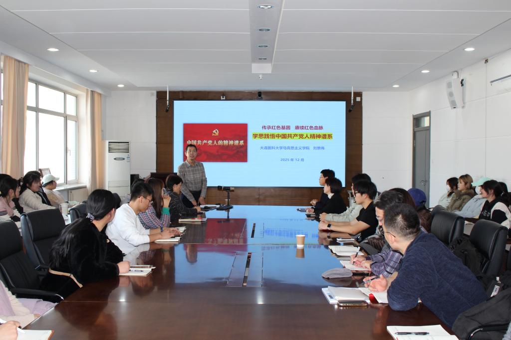 为深入学习贯彻党的二十届四中全会精神,全面推动“中国共产党人精神谱系”融入思想政治教育,引导广大师生赓续红色血脉、筑牢理想信念根基,12月5日,研究生院党总支、公共卫生学院党总支、人文学院、艺术学院党总支联合开展中国共产党人精神谱系宣讲报告会,马克思主义学院党总支书记刘景伟应邀作宣讲报告。来自三个基层党组织的80余名师生党员和学生代表参加学习。