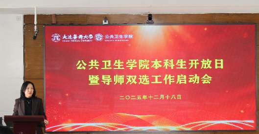 为帮助2025级新生深度了解学院专业特色、感受学术氛围,搭建师生精准对接桥梁,12月18日上午,公共卫生学院举办2025级本科生开放日暨导师双选工作启动会。学院党总支书记兼副院长金新、副院长(主持工作)陈欣、各教研室主任、本科生导师代表及2025级预防医学、公共事业管理专业全体新生参会。