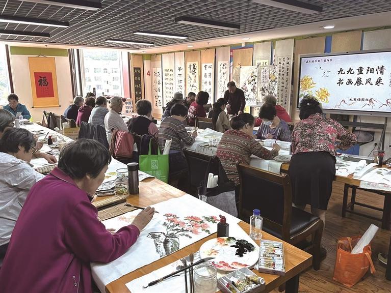 近日,高新区凌水街道大有恬园社区邀请部分书画爱好者于党群服务中心书画教室举办“九九重阳情,书画展风采”重阳节主题活动。