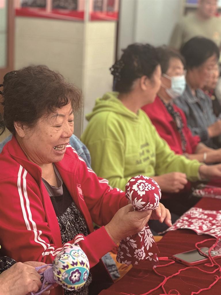 10月11日,西岗区日新街道万全社区新时代文明实践站开展了“重阳佳节情意暖,志愿星火永相传”的主题活动,制作艾草锤。文 卢真珍 图 社区提供