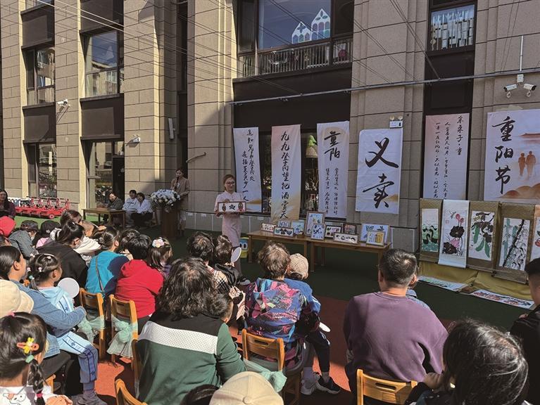 近日,周水子街道周顺社区新时代文明实践站联合辖区智谷幼儿园共同开展了“孝老爱老 多彩周顺”重阳节活动。唐东丽