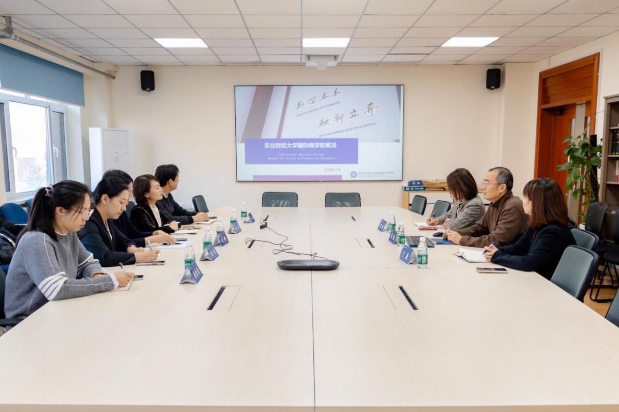 为进一步提升我校中美合作MPH项目的合作办学质量,学习借鉴优秀院校在中外合作办学方面的先进经验,提升我校中外合作办学办学水平,1月8日下午,在学校交流合作处的支持下,学院中美合作MPH项目工作小组赴东北财经大学国际商学院开展学习交流。东北财经大学国际商学院院长孟韬、副院长(教学)于淼、项目部主任图娅,公共卫生学院党总支书记兼副院长金新、交流合作处副处长王宁、公共卫生学院副院长(主持工作)陈欣、教学办公室副主任李景山、中美合作MPH项目专员崔佳雪参加此次调研交流。