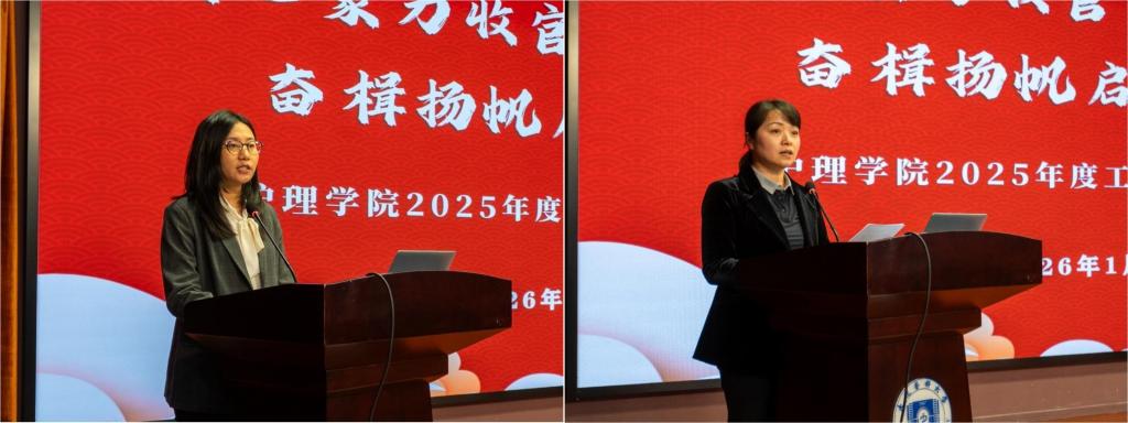 会上,副院长(主持工作)史铁英作2025年工作总结,系统回顾了过去一年学院在党建引领、队伍建设、人才培养、对外交流合作、学科建设、文化建设等方面取得的显著成绩,并对学院“十五五”期间的重点目标和任务进行了规划和展望。