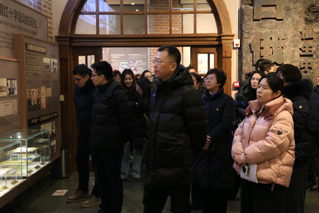 1月24日下午,研学队伍先后走进雷锋文化博物馆与中国红十字运动发源地纪念馆,党委学生工作部部长、学生处处长苍健带领全体学工队伍面向党旗庄严宣誓,重温入党誓词,坚持“为党育人、为国育才”的责任担当。
