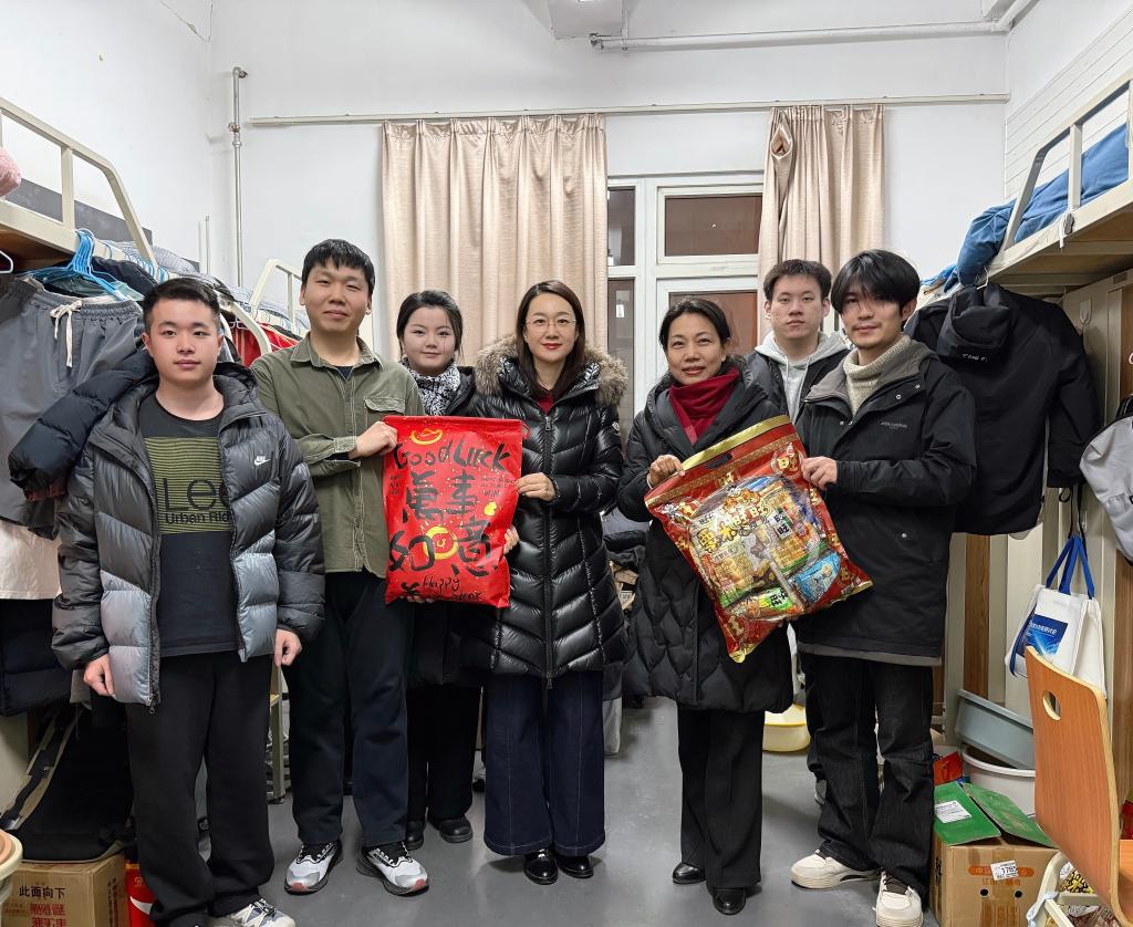 2026年农历新春将至,为全面掌握了解寒假期间学院在连研究生和实习本科生的思想动态和学习情况,落实落细学校关于寒假期间安全工作的部署要求,1月30日,医学影像学院开展春节前在连研究生和实习本科生走访慰问活动。医学影像学院党总支书记罗莹、副书记岳耀,副院长武俊、孙闯,研究生、本科生辅导员参加走访慰问。