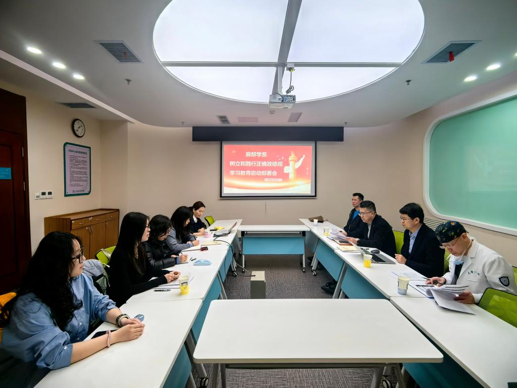 会议集中学习习近平总书记关于树立和践行正确政绩观的重要论述,传达学校党委启动部署开展树立和践行正确政绩观学习教育的会议精神,部署麻醉学系学习教育工作。