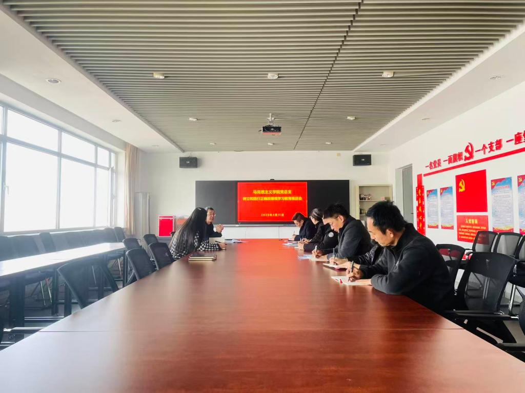 3月6日下午,马克思主义学院党总支召开学院党员会议,学习贯彻习近平总书记关于树立和践行正确政绩观学习教育重要指示精神,传达学习中央党的建设工作领导小组会议精神和中共中央办公厅印发的《关于在全党开展树立和践行正确政绩观学习教育的通知》精神,部署启动学院学习教育。3月11日下午,学院党总支再次召开学习教育推进会,学习领会学校关于学习教育实施方案精神,落实工作提示要求,推进学习教育相关工作。学院党总支书记刘景伟主持会议,对学习教育提出要求。