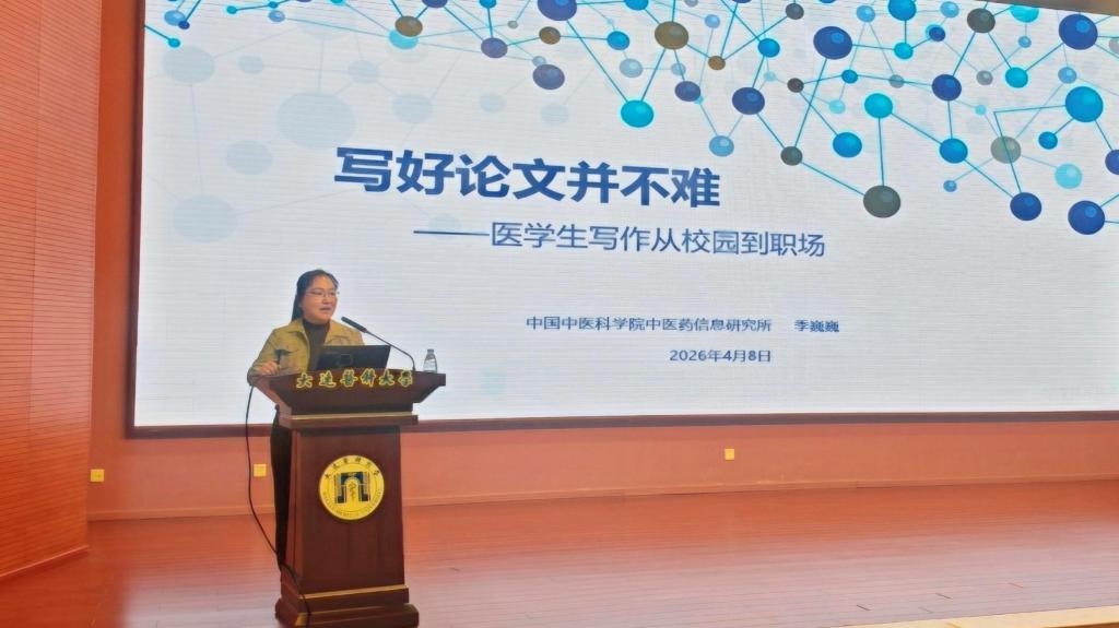 为提升医学生学术写作能力与科研创新素养,破解论文写作难题,助力学子从校园平稳迈向职场,4月8日,图书馆联合大学生创新创业指导中心,在图书馆学术报告厅成功举办“写好论文并不难——医学生写作从校园到职场”专题讲座。讲座特邀中国中医科学院中医药信息研究所杂志出版中心副主任季巍巍主讲,图书馆馆长刘薇薇以及全校各专业医学生及教师代表300余人参加讲座,大学生创新创业指导中心副主任隋华主持。