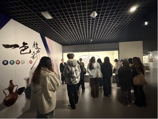 活动中,同学们在博物馆老师的带领下,重点参观了“一色胜万彩——旅顺博物馆藏单色釉瓷器展”。该展览是旅顺博物馆“中国古代陶瓷系列展览”的第三个展项,以青、白、黑、黄、红五色为脉络,甄选馆藏历代单色釉瓷器珍品,系统呈现了单色釉瓷器的发展历程,为观众铺展出最值得凝视的中国美色。