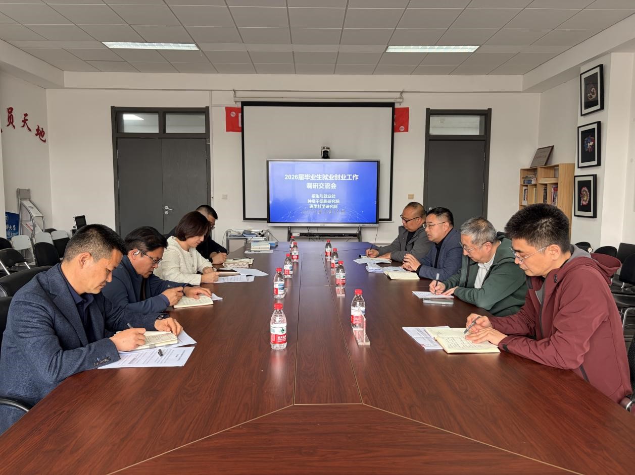 为扎实推进毕业生高质量充分就业,4月13日,肿瘤干细胞研究院、医学科学研究院召开毕业生就业工作调研交流会。招生与就业处处长张勇一行4人,肿瘤干细胞研究院、医学科学研究院领导班子成员及辅导员参加会议。