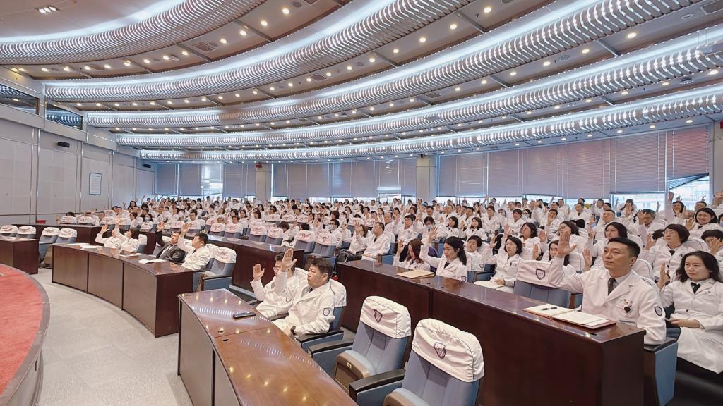 表决环节,全体代表认真行使民主权利,对议案进行庄严表决。大会一致通过《关于推进大连医科大学附属第一医院金普院区新老楼资源整合的报告》。