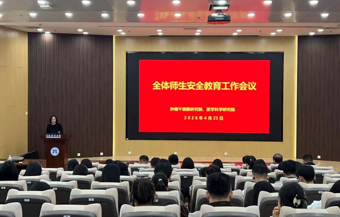 为强化师生安全意识,切实筑牢校园安全防线,4月23日,肿瘤干细胞研究院、医学科学研究院在基础医学院学术报告厅召开安全教育大会,全体师生参加会议。会议由党总支书记韩静主持。