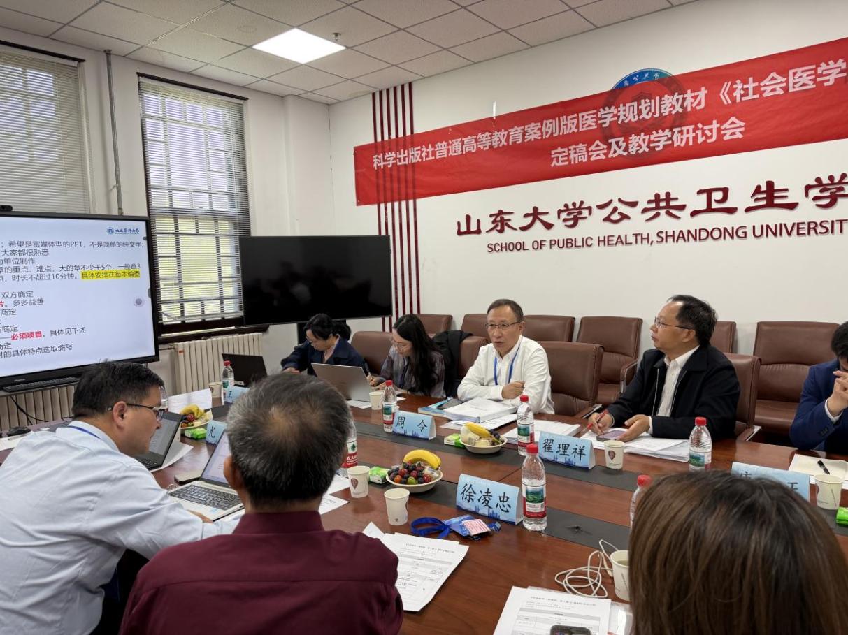 4月24日,科学出版社规划教材《社会医学》(案例版,第4版)定稿会在山东大学公共卫生学院召开。本版教材由我院周令教授担任主编,学院丁玎、张昊老师与全国其他11所院校的专家作为编委参加会议。会议围绕教材内容完善、案例遴选、体例规范和出版要求等内容进行了深入研讨。