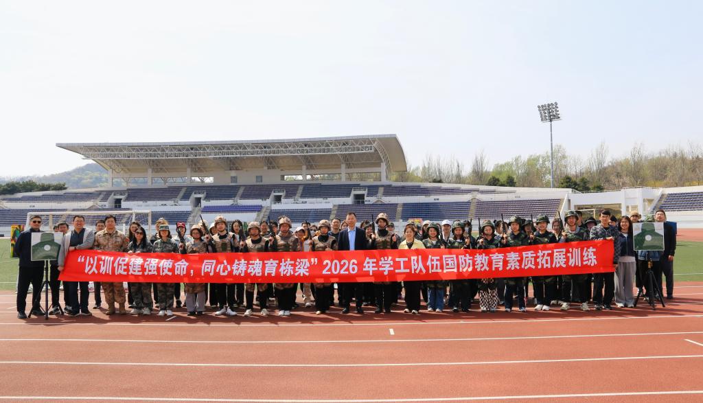 为强化学生工作队伍的国防意识,提升团队凝聚力与战斗力,4月22日,党委学生工作部在主体育场举行“以训促建强使命 同心铸魂育栋梁”2026年学工队伍国防教育素质拓展训练。党委学生工作部、团委、研究生院等相关部门负责同志及全体辅导员参加活动。