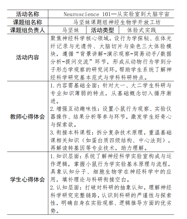 为深化本科生创新创业教育,进一步提升学生科研实践能力与创新素养,大学生创新创业指导中心以“早进实验室、早进课题、早进团队”为抓手,制定《实验室面向本科生创新创业实践开放工作方案》,搭建实验室与本科生创新创业实践双选服务平台,畅通师生精准对接渠道。实验室开放构建“体验式实践-进修式实践-课题式实践”多元形态,形成“入门体验-进阶培养-项目创孵”三级实践路径,系统性赋能学生成长。首轮已统筹各级实验室推出实验室面向本科生创新创业实践活动58个,共计147场次、19个课题、853个名额,有效拓宽本科生科研参与覆盖面。