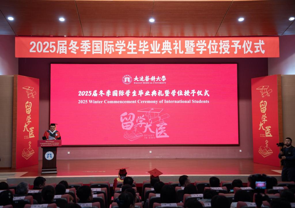 1月8日,学校2025届冬季国际学生毕业典礼暨学位授予仪式在图书馆学术报告厅举行。党委副书记、校长刘莹,副校长邵淑娟,学校相关职能部门及学院负责人,留学生教学督导,国际学生导师、教师代表,国际教育学院全体教职员工,来自13个国家的49名毕业生及部分亲友参加了典礼,仪式由国际教育学院副院长(主持工作)李晓东主持。