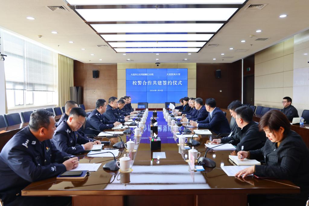 1月9日下午,学校与大连市公安局旅顺口分局校警合作共建协议签约仪式在校部507会议室隆重举行。旅顺口区政府副区长、公安分局局长蒲露,交通管理大队大队长董杰、旅顺公安分局副局长孙作权,分局办公室、内保大队、刑侦大队、龙头派出所负责同志、驻校民警受邀参会。大连医科大学党委书记李海洋出席签约仪式,党委副书记王运河主持仪式。