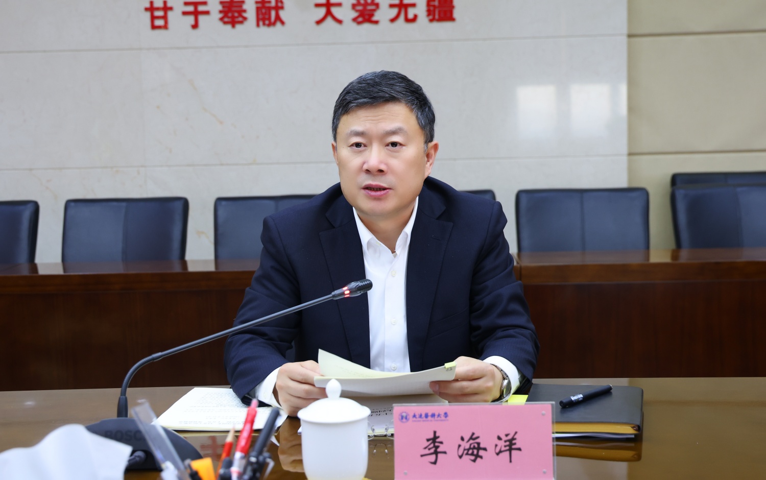 李海洋要求,学校各级党组织、党员领导干部要坚持问题导向,聚焦民主生活会主题,高质量召开年度民主生活会。会前工作要下实功,抓好理论学习、征求意见、谈心谈话等各环节工作;查摆问题要见实情,紧扣中央明确的5个方面、落实意识形态工作责任制和反面典型案例,查摆突出问题,找准思想根源,做到见人见事见思想;批评和自我批评要“红脸出汗”,确保民主生活会开出好成效;整改落实要出实招,坚持“当下改”与“长久立”相结合,将整改成效转化为推动高质量发展的强大动力。